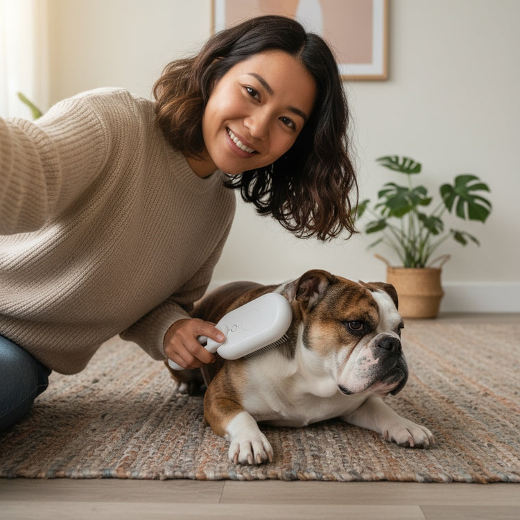 WhiskerGroom™ transforms grooming time into a fun bonding experience. Our built-in mist spray hydrates fur as the gentle silicone comb massages away loose hair, leaving tails wagging.